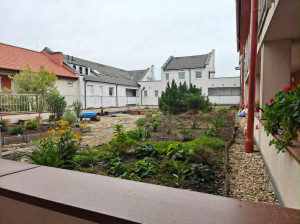 A házat a 2000-es évek elején építették, a hirdetett ingatlan egy tiszta, rendezett lépcsőház első emeletén található. Tartozik hozzá egy saját zárható tároló. A belső udvarban a lakók hangulatos kis kerteket alakítottak ki.